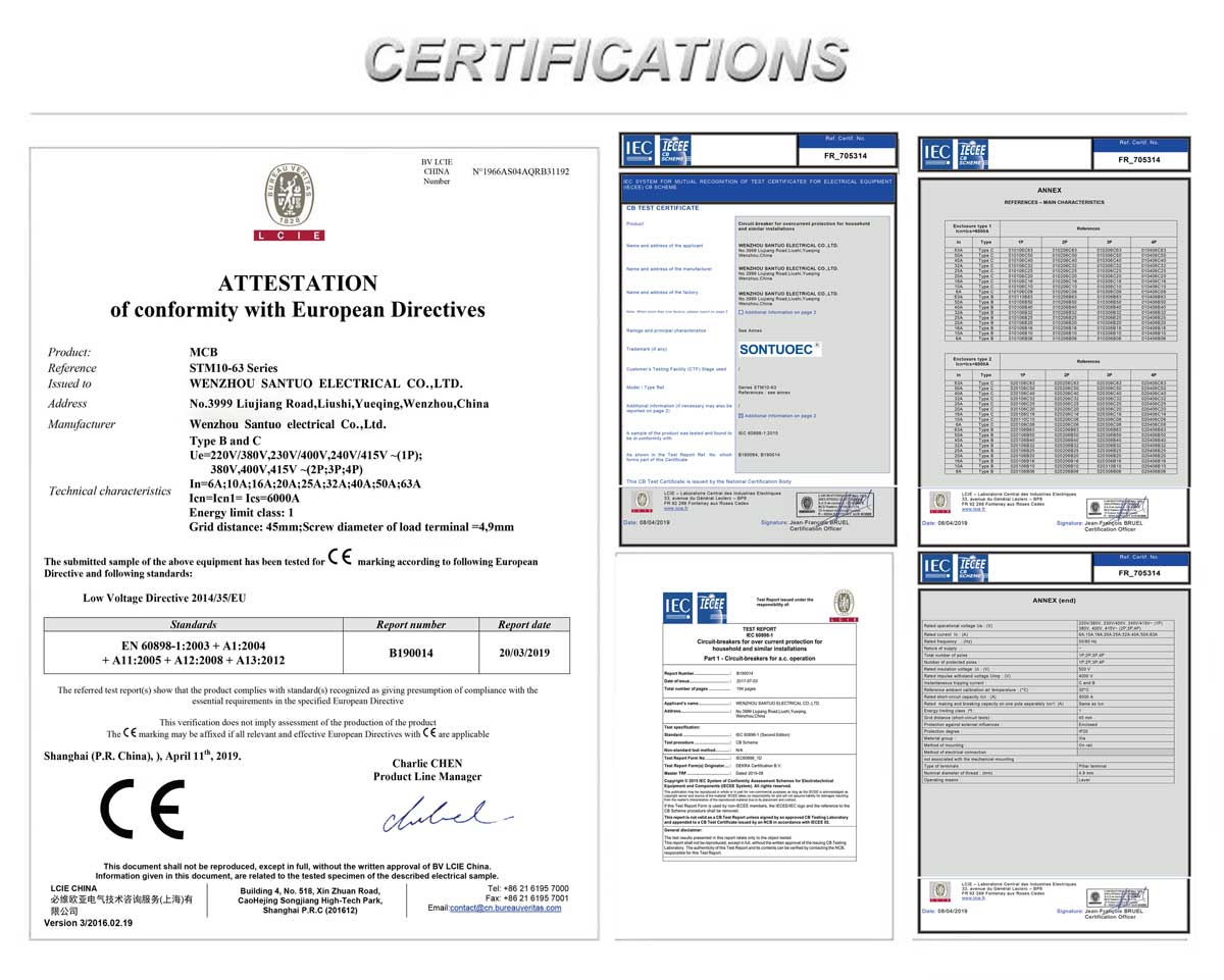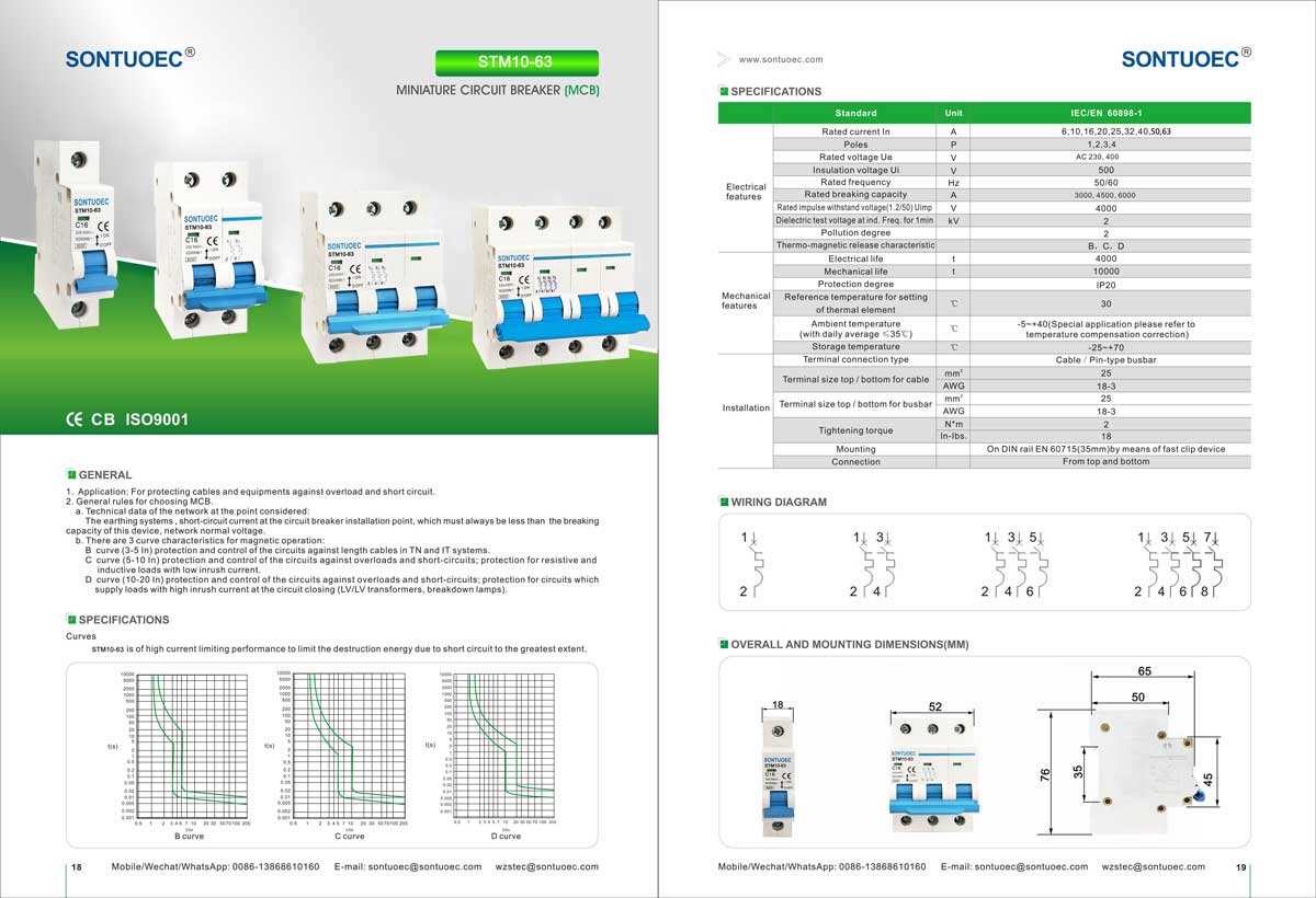 SONTUOEC विभिन्न साना विद्युतीय उपकरणहरूको उत्पादनमा विशेषज्ञता हासिल गर्ने चिनियाँ आपूर्तिकर्ता/निर्माताहरू मध्ये एक हो STM10-63 श्रृंखला उच्च ब्रेकिङ मिनिएचर सर्किट ब्रेकरमा संरचना उन्नत, प्रदर्शन भरपर्दो, ब्रेकिङ क्षमता उच्च, सुन्दर देखिने र यसको शेल र भागहरू प्रभाव प्रतिरोध, बलियो फिचर फ्लेमयुक्त सामग्रीबाट बनेका छन्। यो 50 वा 60 फ्रिक्वेन्सी, Ue 400V र तल, Ui 63A र तलको पावर प्रणालीको लागि उपयुक्त छ। यो IEC60898.1 र GB10963.1 मापदण्ड अनुरूप छ।
