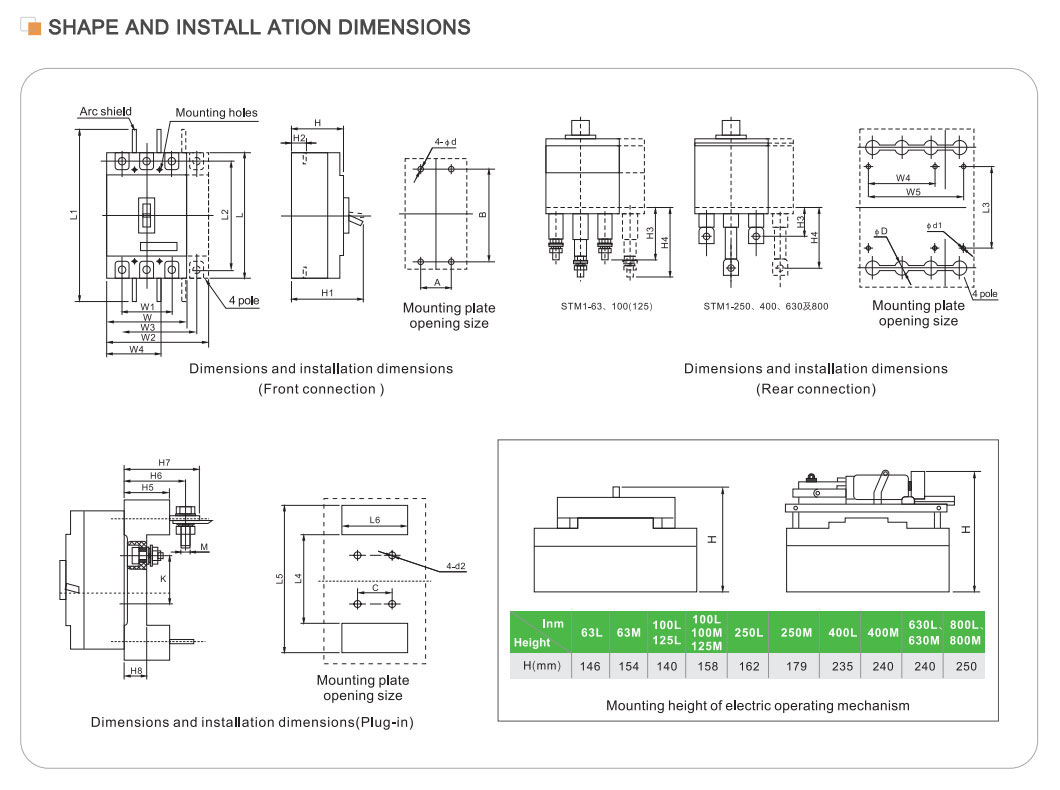 | मोडेल | STM1-125 | STM1-250 | STM1-400 | STM1-630 | STM1-800 | STM1-1250 | |||||||||||||